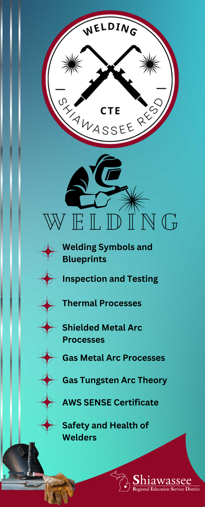 Students who successfully complete Welding will earn high school credit and will also have the opportunity to earn articulated college credit.