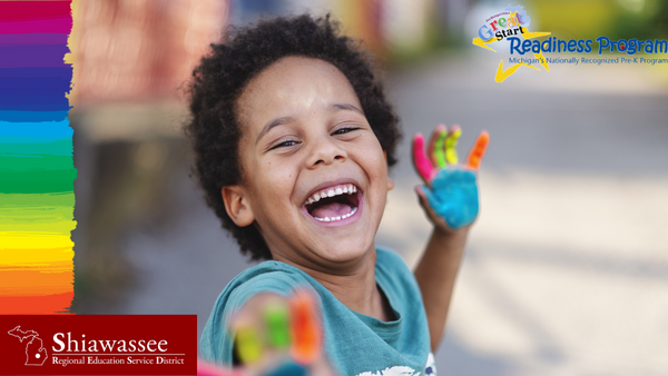 Powered by Preschool boy with paint on hands